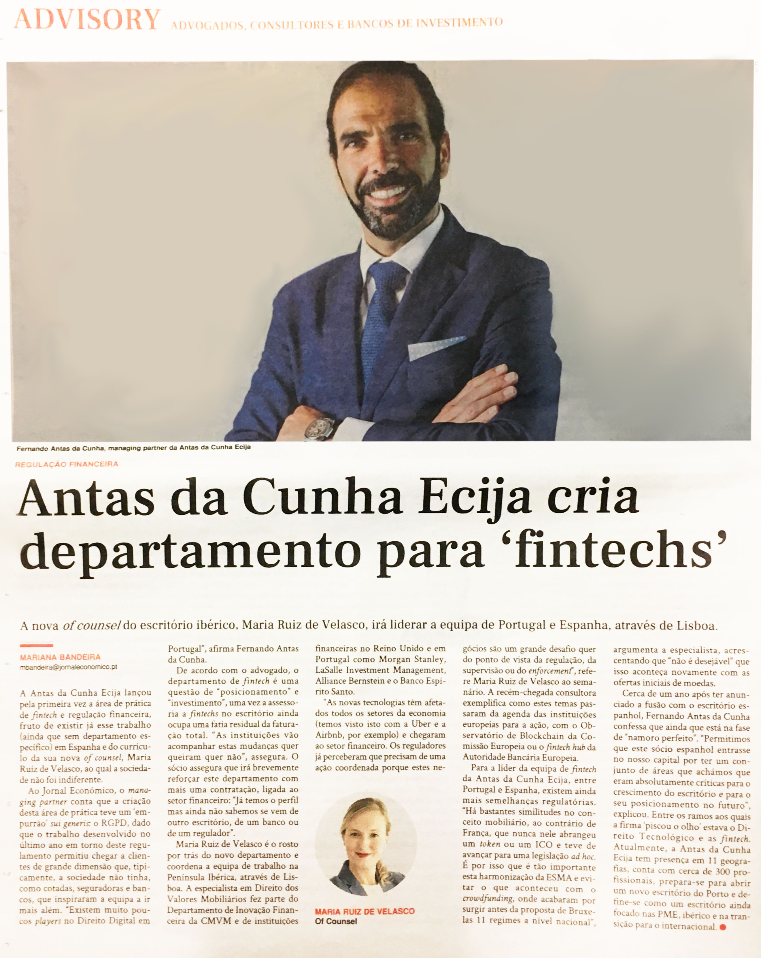 News & MediaAntas da Cunha Ecija cria departamento para “fintechs”