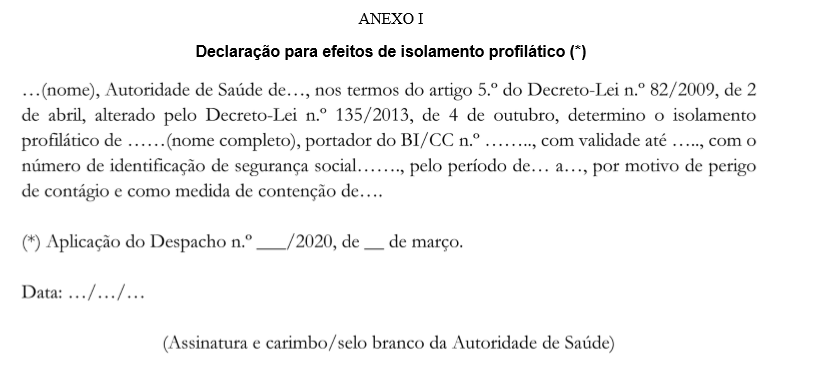 R.: Nos termos do Despacho n.º 3103-A/2020, que veio operacionalizar os procedimentos previstos no Despacho n.º 2875-A/2020, deverá ser preenchida e emitida uma declaração pela Autoridade de Saúde para efeitos de isolamento profilático. A declaração, que substituirá o formulário de incapacidade temporária por doença, é entregue ao trabalhador que terá de a fazer chegar ao empregador. Como? No limite, via e-mail, pois o trabalhador isolado tem de ficar monitorizado, não podendo abandonar a sua residência e deve evitar o contacto físico. Só assim poderá o empregador remeter, no prazo máximo de cinco dias, através da Segurança Social Direta, a referida declaração para efeitos de comunicação. A declaração que atesta a necessidade de isolamento substitui o documento justificativo da ausência ao trabalho para efeitos de justificação de faltas, não constituindo baixa médica.